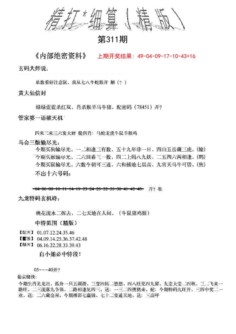 | 311期刘伯温《三头中特》【2.1.3】开?00准 |
